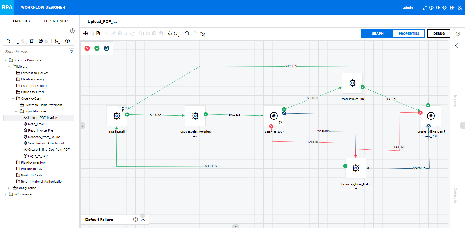 Dank der intuitiven Benutzeroberfläche, die wenig / keinen Code verwendet, können alle Arbeiten in einem Bildschirm durchgeführt werden. Dazu gehört u.a. das Aufzeichnen und Editieren von UI Aktionen, Parametrisieren von Eingaben, Drag and Drop von 8’000+ vorgefertigten Automatisierungs- und Integrationsbausteinen sowie einfaches Verbinden von UI und API Automationsbausteinen. Als zusätzliche Option können benutzerdefinierte Vorgänge programmiert und als weiterer Baustein in den RPA-Workflows eingefügt werden.